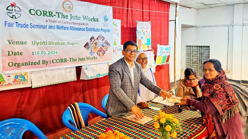 Fair Trade Seminar and Welfare Allowance Distribution program of CJW held on 10 January 2024 at Jyoti Bhaban, Nagori, Kaligonj. Mr.