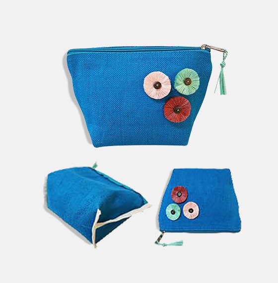 Moyurkonthi Jutton Pouch Bag With Pompon Flower & Tussel with Zeeper Runner